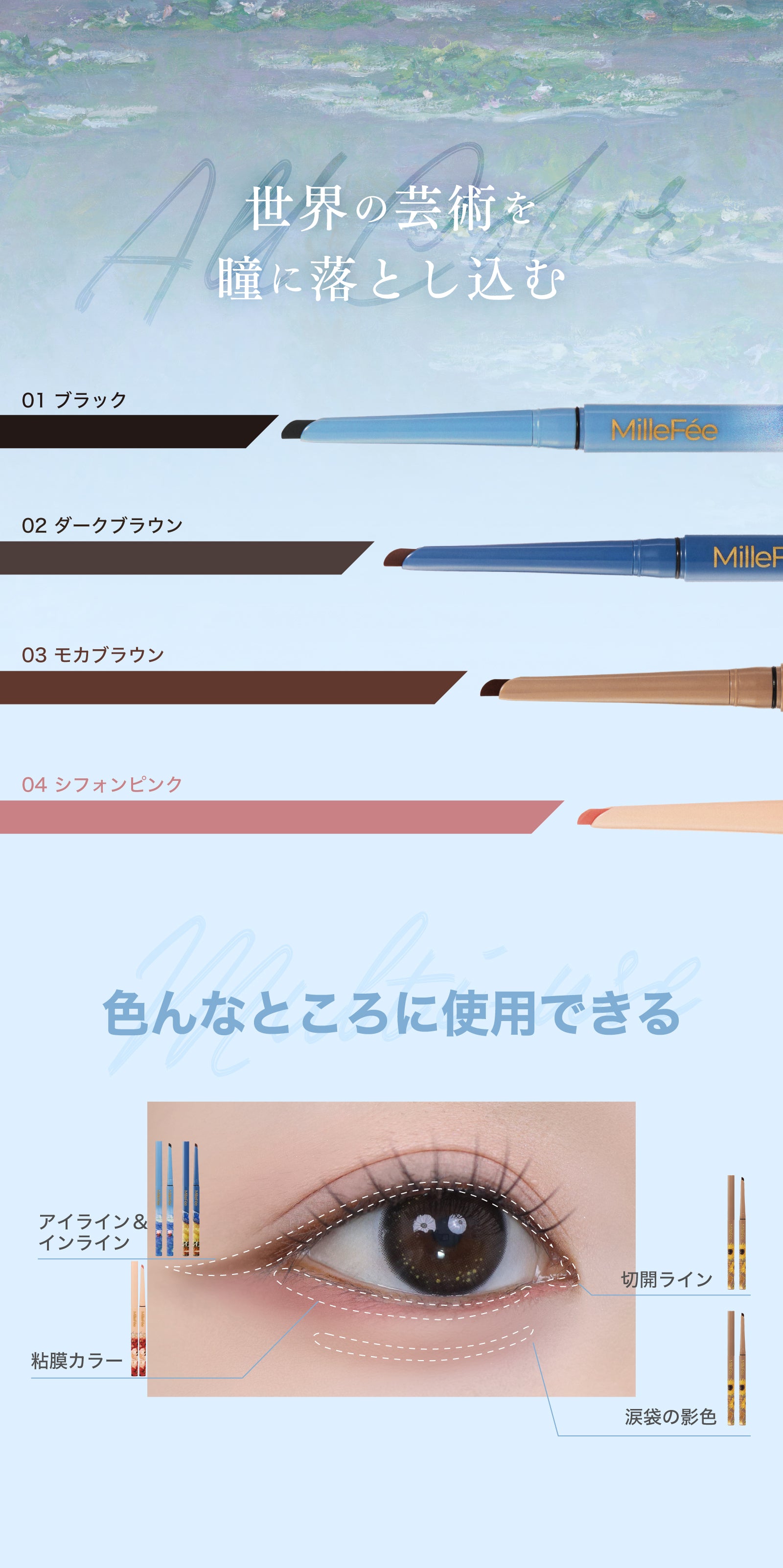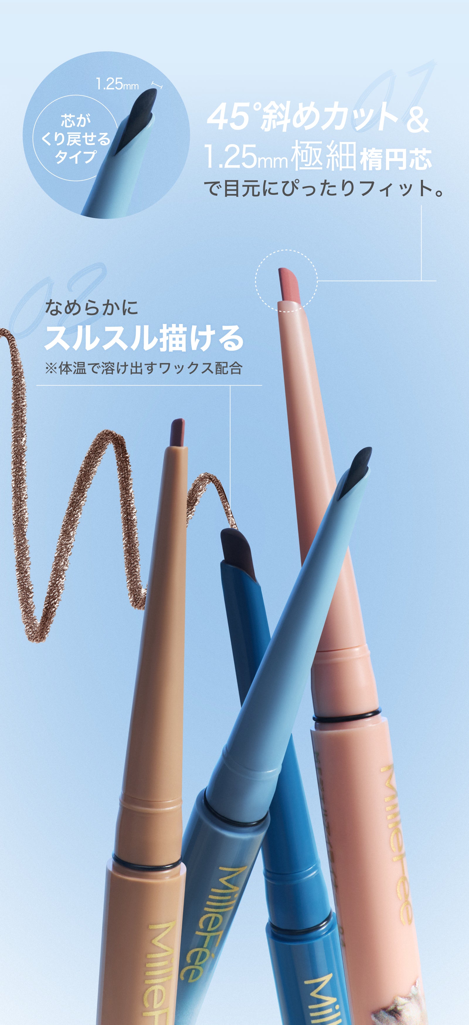 全成分:メチルトリメチコン、トリメチルシロキシケイ酸、ジメチコン、セレシン、ポリエチレン、オゾケライト、(アクリレーツ/アクリル酸ステアリル/メタクリル酸ジメチコン)コポリマー、フェニルトリメチコン、マイクロクリスタリンワックス、ポリメチルシルセスキオキサン、合成フルオロフロゴパイト、カルナウバロウ、キャンデリラロウ、シリカ、カプリリルグリコール、トコフェロール、ジステアルジモニウムヘクトライト、クエン酸トリエチル、トリエトキシカプリリルシラン、酸化鉄、酸化チタン